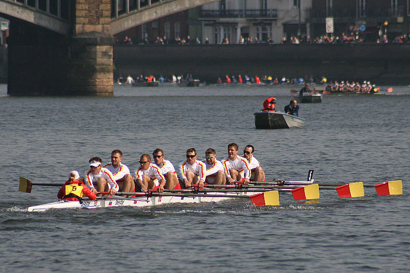 The first overseas winners were the German Olympic gold medallists in 1993; they won again the following year and the Dutch national crew won in 1995.  Since then, apart from 1999-2001, when Queens Tower were the winners, Leander Club have generally won, except for 2009 when a crew comprising five of the finalists from the 2008 Olympic Single Sculls with three others of equal standing were brought together by Bill Barry of Tideway Scullers.  This crew gave the spectators a real treat and it is a pity that it is unlikely to be repeated.